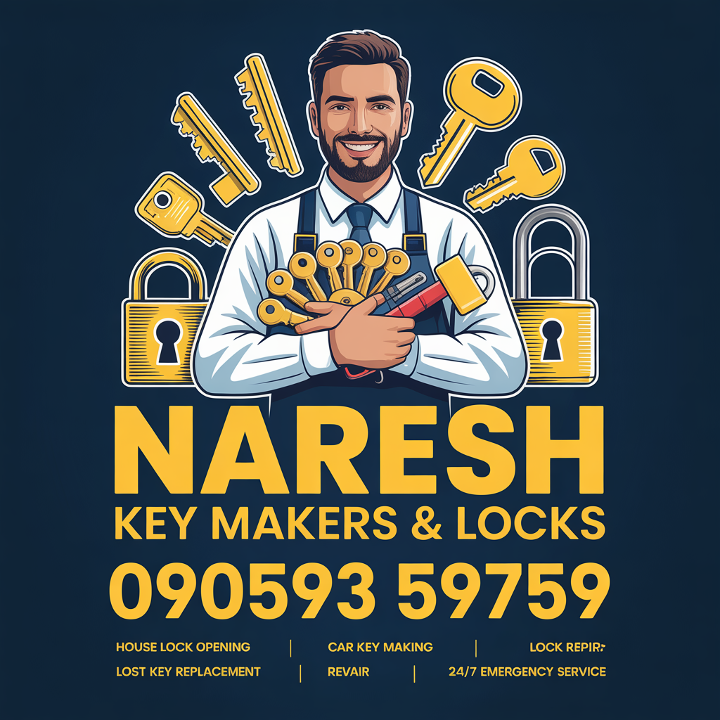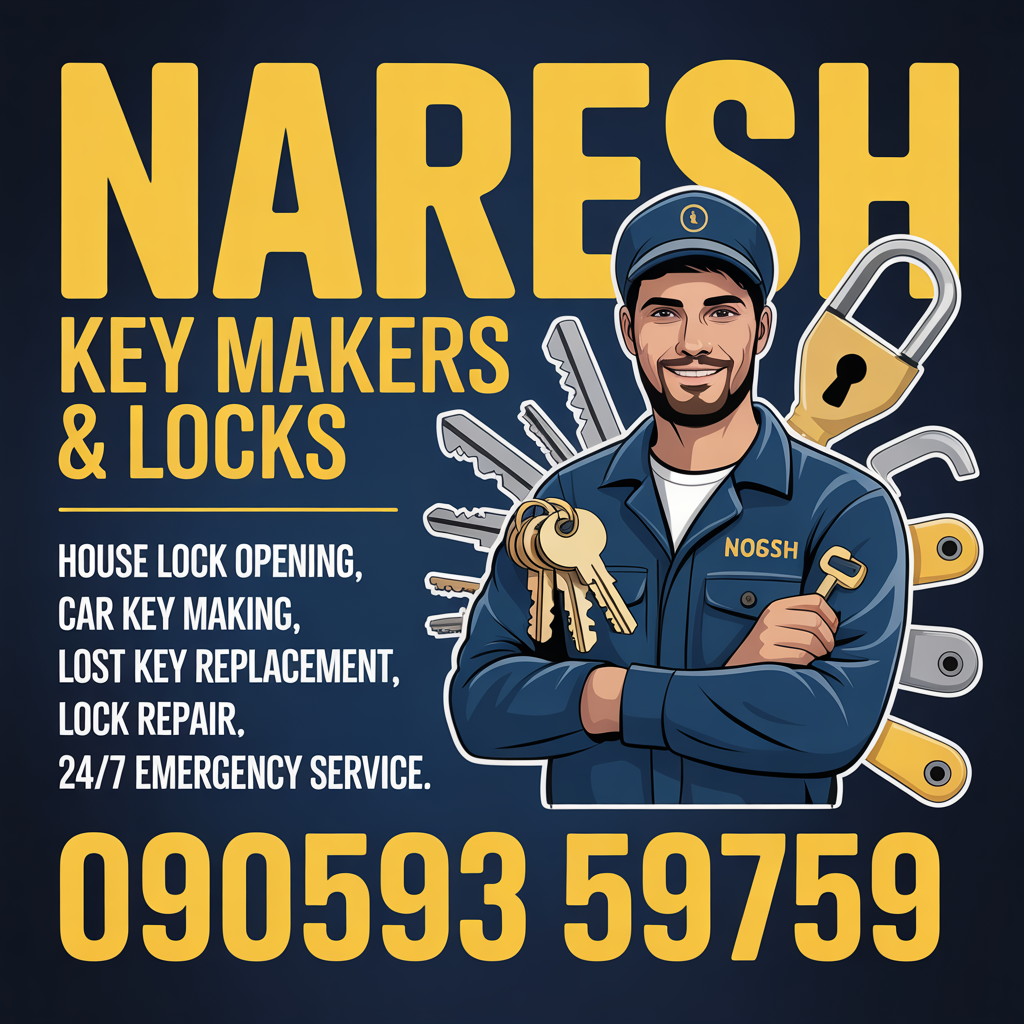 Welcome to Naresh Key Makers & Locks, your local expert for all types of locksmith services. We provide quick, secure, and professional key and lock solutions for homes, offices, shops, and vehicles. Whether you’re locked out, need a duplicate key, or want to upgrade your security, we are just one call away.